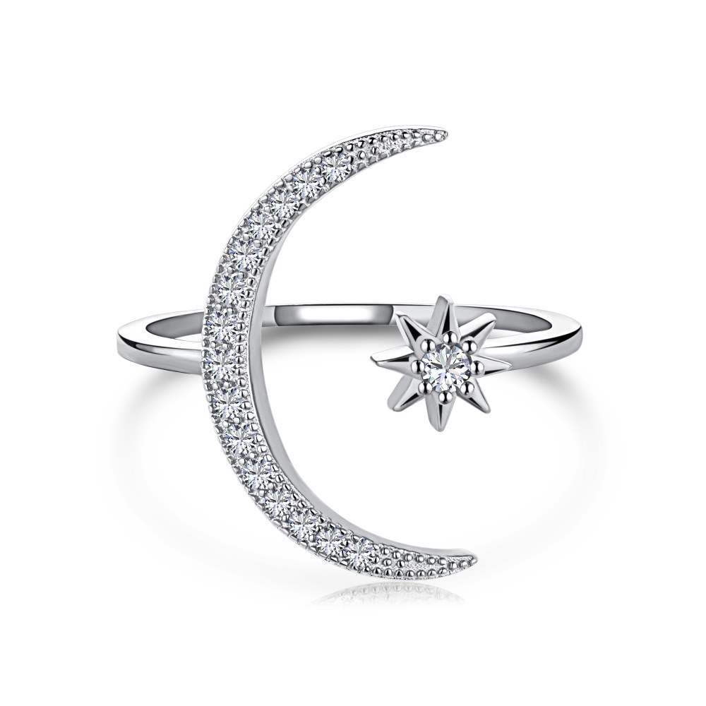 This eclipse ring is the perfect way to add a little bit of edge to your look. The adjustable sterling silver ring features a star gemstone and crescent moon.